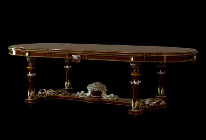 From the intricate woodwork to the refined finishes, every detail reflects the essence of timeless luxury. This design captures the harmony of tradition and opulence, transforming the dining space into a true work of art.